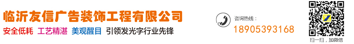臨沂市友信廣告裝飾工程有限公司是一家從事LED外露發(fā)光字制作、外漏LED銃孔發(fā)光字、臨沂亞克力發(fā)光字、不銹鋼發(fā)光字、霓虹燈、銅字標(biāo)牌、樹脂字、樹脂發(fā)光字、環(huán)氧樹脂發(fā)光字等發(fā)光字,所以說臨沂發(fā)光字行業(yè)比較有優(yōu)勢(shì),是不銹鋼字牌、鈦金字牌、金箔字、貼金字、水晶字、不銹鋼燈箱字、LED燈箱字、發(fā)光燈箱牌、以及鋁合金導(dǎo)向牌、弧面標(biāo)牌等設(shè)計(jì)與施工的公司。